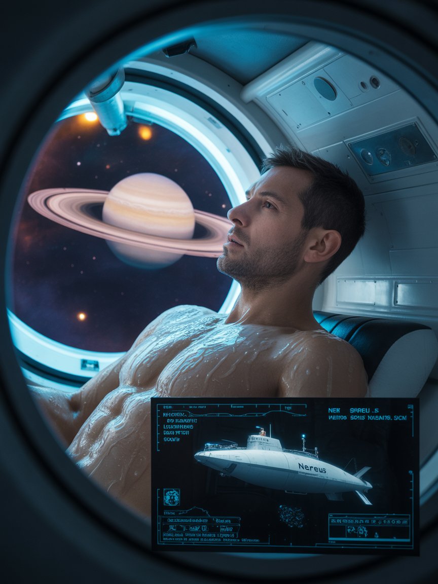 С этими словами они вошли в огромный купольный зал дока. "Нерей", уже спущенный на воду, тихо покачивался в круглом бассейне, соединённом с ледяной шахтой, ведущей в океан Энцелада. Сейчас шахта была закрыта массивным шлюзом, но вскоре он откроется, позволяя субмарине начать свой исторический спуск.