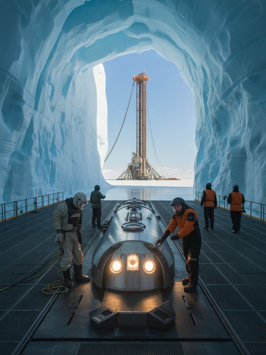 Следуя протоколу миссии, они начали подъём к подледной базовой станции – небольшой автоматической платформе, закреплённой на нижней поверхности ледяной коры недалеко от входной шахты. Станция служила безопасным местом для ночного "отдыха" субмарины, позволяя экипажу отдохнуть, не поднимаясь полностью на базу.