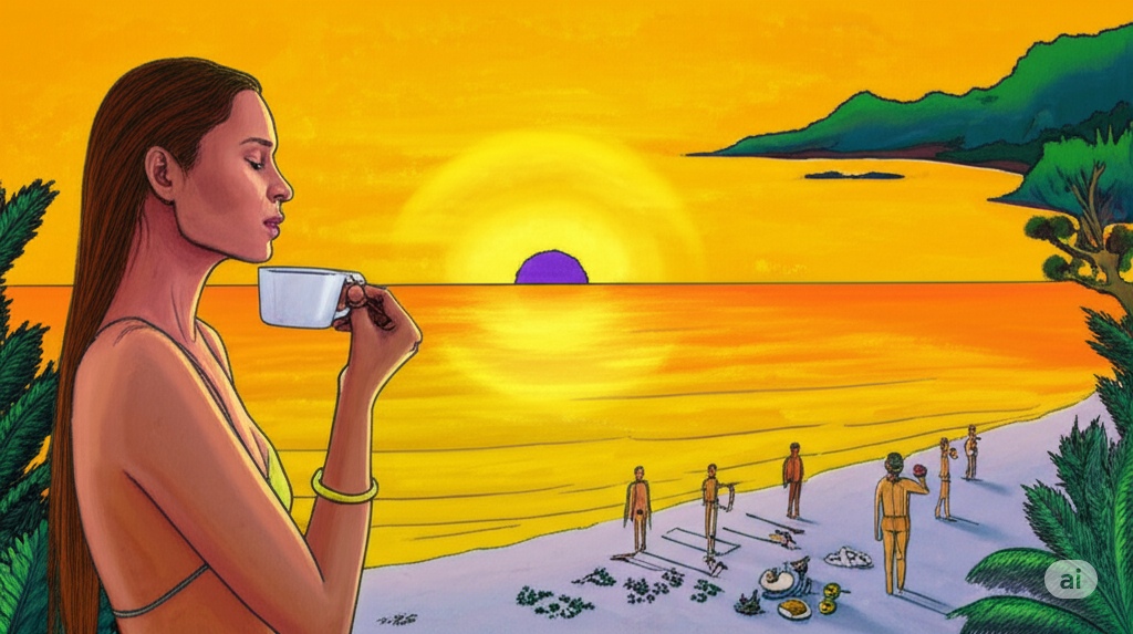 Запах кофе смешался с ароматом манго и моря. Ей было достаточно. Она протянула руку к Рогу, чтобы попросить вторую чашку.