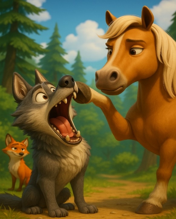 – Волк, милый, мной ты не насытишься. Посмотри на меня – шкура да хвост. Лучше иди к кобыле. Она – большая, жирная, сытная. Уж ею точно наешься.