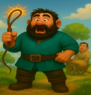 Крестьянин потерял терпение и хлестнул его кнутом. Алангазар вздрогнул и отдёрнул ногу. Второй раз – ударил. Он уже поднял голову. А на третий – встал!