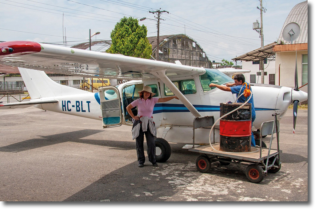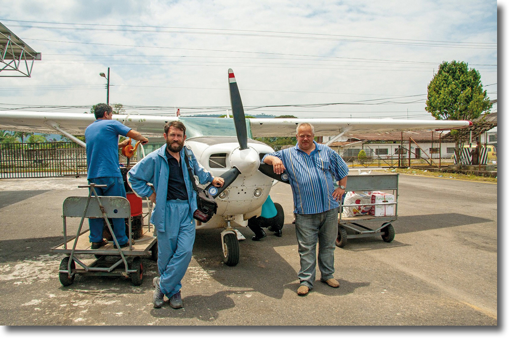 В аэропорту нас ждал небольшой легкомоторный самолёт вместимостью 4–5 человек. Полёт в глубину амазонских джунглей должен был занять около часа. Все вместе за один раз мы не помещались, поэтому пришлось лететь двумя партиями.