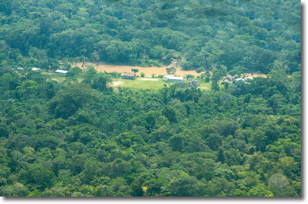 Из окна самолёта видны были с десяток хижин, расположенных вдоль реки, и так называемая посадочная полоса, представляющая собой небольшое поросшее травой поле со срубленными деревцами. Там мы и приземлились, остановившись за несколько метров до деревьев.