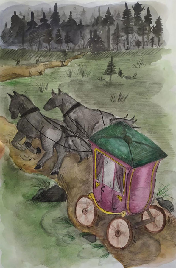 Карета все дальше и дальше удалялась от замка. Черные кони, беспощадно хлестаемые кучером, начали громко хрипеть и Ягна скомандовала умерить пыл – они уже были очень далеко от замка, пробираясь в глухом темном лесу.