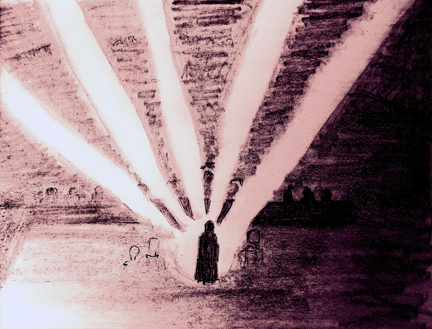 Смеркалось. Леонид, не особо поверивший Лоре про якобы защиту, раздавал оружие тем, кто мог его держать. Женщин, стариков и детей собрали в одной палатке, и некоторым женщинам тоже дали оружие. Их мини-лагерь, готовился к ночной обороне. Солнце нещадно садилось и по мере того, как пропадал солнечный свет, вокруг лагеря начиналась другая жизнь. Но хоть солнце практически скрылось, света меньше не стало, наоборот, он разгорался всё ярче и ярче. Тогда все заметили, что лагерь очерчен по кругу открытым огнём, который создаёт стену и освещает лагерь и несколько метров за ним. Ночные твари стояли с той стороны стены, это было заметно по горящим глазам и то ли по чавкающему, то ли квакающему звуку. Но подойти близко, а тем более попасть внутрь ни одна из тварей не рискнула.