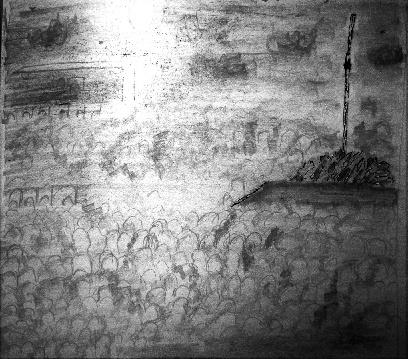 Подъезжая к площади, они издали увидели эшафот, на котором был навален хворост, а по середине-шест. Справа от эшафота было ложе, в нём сидел мужчина весь в перстнях и с золотыми цепями на шее. Рядом молодой человек, видимо его сын, а вокруг них стояло человек двадцать вооружённых охранников, по сравнению с которыми Артур-милая панда, а не медведь.