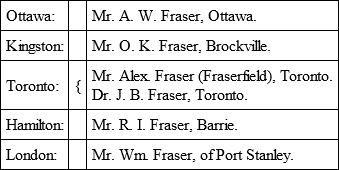 Messrs. R. L. Fraser, Toronto; Abner Fraser, Hamilton; A. G. Fraser, London.
