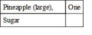 Adelaide, after removing the skin and eyes from the pineapple, cut it into quarters lengthwise and removed the cores. Then she weighed it, after which she put the pineapple through the meat chopper.