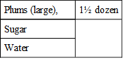 Adelaide wiped each plum thoroughly with a damp cloth, cut it in halves with a silver knife, and removed the stone. Then she weighed them. To each pound of fruit Adelaide measured one cup of water and one cup of sugar. The plums and the water she placed in the saucepan over the fire and let them come slowly to the boiling point, while the sugar was heating at the back of the range in an earthenware dish.