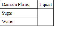 The Damson plums Adelaide wiped thoroughly, and pricked each one with a silver fork twice. Then she weighed the fruit. To each pound she measured three-quarters of a pound of sugar. To each pound of sugar Adelaide measured one cup of water. The sugar and water she put in the saucepan and placed over the fire. When the syrup boiled, Adelaide skimmed it and added the plums. The plums Adelaide cooked until they were tender, stirring them carefully with a wooden spoon so as not to break the fruit, then filled the sterilized pint jar to overflowing. A silver knife was inserted between the fruit and jar to let all air bubbles rise to the top and break. The new rubber was dipped in boiling water, placed over the top smoothly and the jar sealed quickly. This Adelaide stood upside down out of the way of any draft. In the morning the jar was carefully examined to see that it did not leak, all stickiness was wiped off with a damp cloth, the label was pasted on, and then Adelaide stored the jar away in the preserve closet.