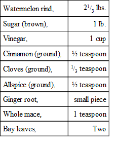 One day when watermelons were in their prime Adelaide's mother bought a part of one for dessert. She told Adelaide to save all the rind and the next day she would show her how to make another tasty relish to be eaten with cold meats.