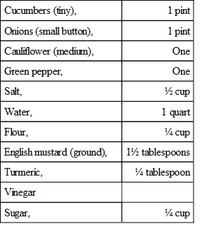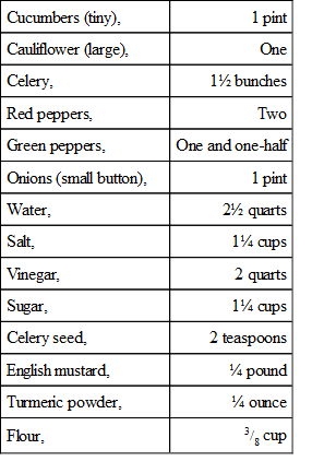 Piccalilli was another general favorite, and the recipe came from a friend who had experimented with it a number of years so that now she considered the flavor exactly right.