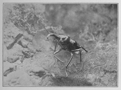Perhaps I ought to tell you how to know a beetle when you see one. This sounds easy enough, but it is not quite as easy as it sounds. All beetles have six legs (beetles' bodies are divided into three parts, and the legs grow out of the middle part); nearly all of them have strong, horny covers for their wings, and all of them have their skeletons outside. This sounds a very topsy-turvy arrangement, but it is quite true. We have our bones inside, and our flesh outside, but beetles have their bones outside and their flesh inside. Sometimes you may see beetles crushed flat in the road, but often they are trodden on or run over without being killed; and the reason for this is that their hard, outside skeletons prevent their soft insides from being altogether squashed up. Once I ran over a Stag-beetle on my bicycle—it was nearly dark at the time, and I was over him before I could get out of his way. Now a big Stag-beetle weighs about an eighth of an ounce, and I am rather a heavy person—indeed, with my bicycle thrown in I should think that I must weigh over two hundredweight, which is about thirty thousand times as much as the Stag-beetle. You can imagine how surprised I was to find that the Stag-beetle was not hurt. I ought to tell you, though, that the road was soft, and that my bicycle-tyres were not blown up hard, so perhaps the Stag-beetle did not get all my weight on his back—but, anyhow, it was a wonderful escape for him, wasn't it?
