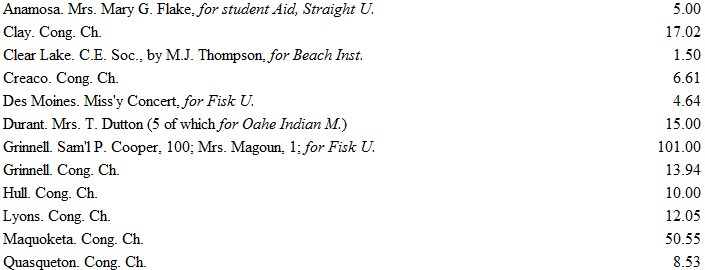 IOWA.—Woman's Home Miss. Union, Secretary, Miss Ella E. Marsh, Grinnell, Iowa.