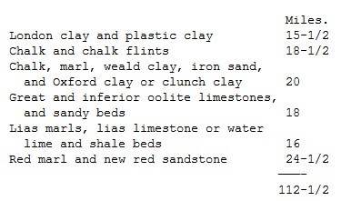 The line of the proposed plan for this useful and excellent undertaking has been forwarded to us. We know not whether the projectors are aware that a straight line is no longer necessary, but that the sharpest turns may now be made on rail-roads by an American invention, lately carried into effect in the United States with singular success.—The line of railway will be 112-1/2 miles. Birmingham being between 3 and 400 feet higher than London, and the intervening ground much broken, the railway could not be laid down without an inclination in its planes; the rise, however, will in no case exceed 1 in 330. The highest point of the line is on the summit of an inclined plane 15 miles long, rising 13-1/3 feet in each mile, and is 315 feet above the level at Maiden Lane, London; from which it is distant 31 miles. The termination at Birmingham is 256 feet higher than the commencement at London. It is intended that there should be 10 tunnels—one at Primrose Hill half a mile long, one near Watford a mile long, and one near Kilsby, 78 miles from London, a mile and a quarter long. The others are each less than a quarter of a mile in length, with the exception of one, which is a third of a mile long. They will all be 25 feet in height, well lighted, and ought rather to be called galleries than tunnels. The strata through which the railway is carried, appear generally to follow in this order from London: