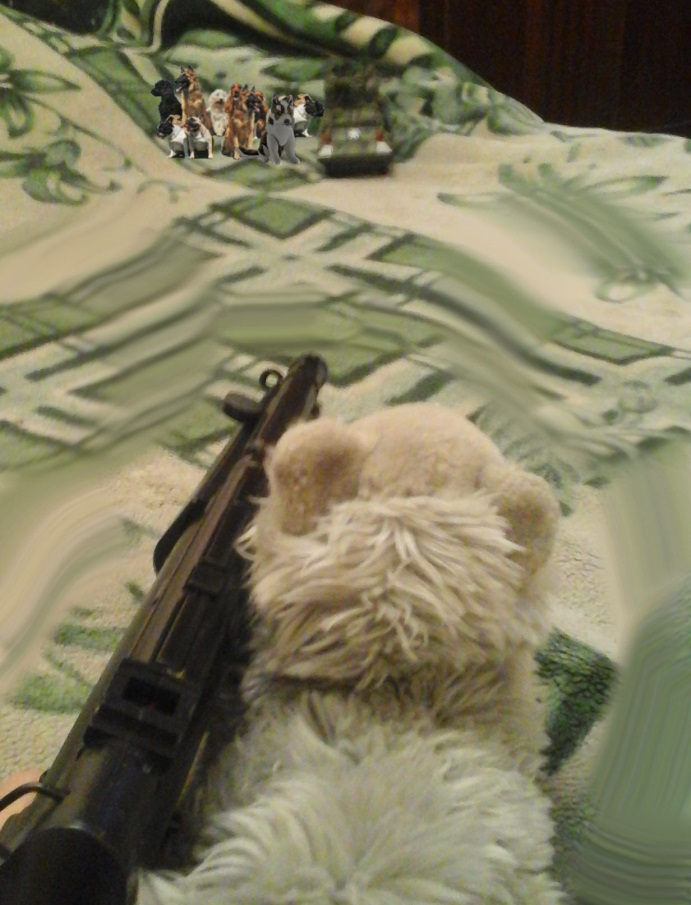 Покуда мы продвигались, вышли на связь северо-восточные пограничники, сообщив, что их четверо, и что они уже засели за углом квартала и могут наблюдать приближение псов. Как и предполагалось, собаки двигали к мэрии, причём с двух сторон: от «Собачника» и из-за города, и всего их было не меньше полусотни. Скоро мы тоже приблизились к мэрии и сами смогли видеть псов. Оказалось, собаки зачем-то всю свою армию слили в одну кучу и встали под входом в мэрию, очевидно, здание заперли изнутри, и теперь псы продумывали его штурм (вернее, готовили способ разнести двери); я же велел нашему отряду разделиться, чтобы зайти на место предполагаемой битвы с двух сторон. К огромному числу собак все уже были морально готовы, однако все были изумлены, увидев, что псы неизвестно откуда пригнали… бронетранспортёр! Мэрия была уже под носом, можно было даже разглядеть отдельных из окруживших её собак (Злючка был в их главе, как я и думал), псы же заметили нас и приготовились открыть огонь.