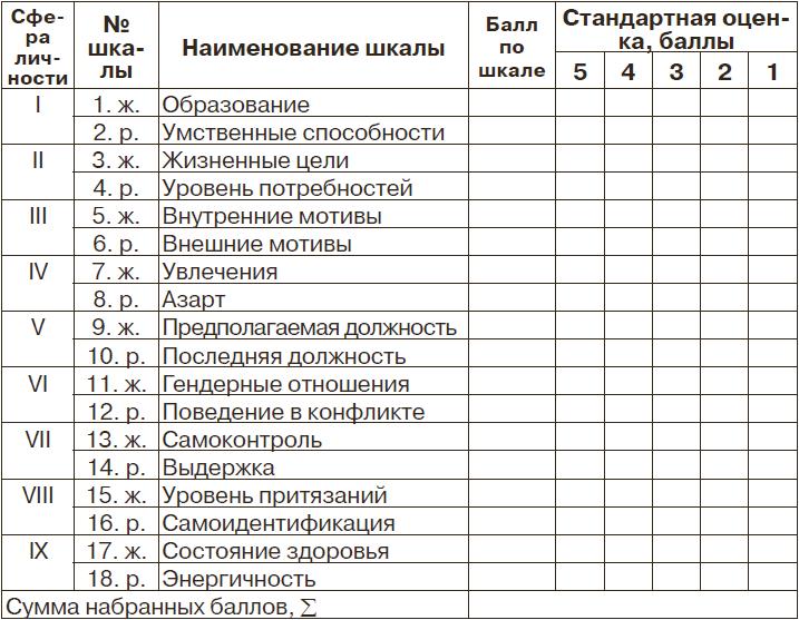 ПРОФИЛЬ САМОРЕАЛИЗАЦИИ ЛИЧНОСТИ(Авторская разработка)