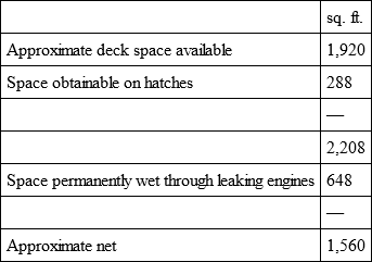 The following measurements show what trouble so simple a fault can cause. In the tropics the wet portion of the deck could not of course be used for sleeping purposes.