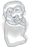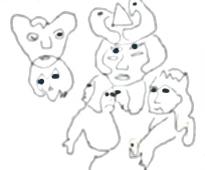 Здесь, похоже, изображён процесс сотворения души, и участвуют в этом звероподобные существа. На камне с переднего плана фотографии видны лица: