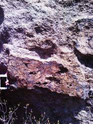 Аркозы – это обломочный материал из гранита, типа песчаника, состоящий из кварца и ортоклаза (Википедия). Похоже, это и есть тот материал, из которого выполнены мегалиты. Кварцевые чешуйки мегалитов ярко блестят в свете солнца. Если смотреть на район реки Кама от Дальнего Востока, то виден на рельефе медведь с птицей на груди, соответствующий каменному изваянию, а в его морде заключён кот: