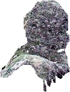 По надписям на ней, я нашла его копию на рельефе Японии. Это вулкан Асо. Обратите внимание на круглую выемку на «щеке». Они совпадают у камня и на рельефе: