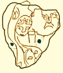 Кроме обведённых мною лиц, на камне есть выбитый гномик: