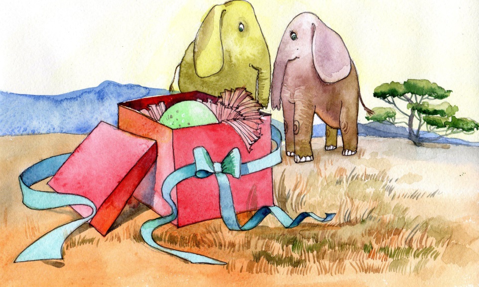 – Подарок! – послышался из спальни радостный голос слонихи. – Ах, неужели мы получили подарок? Наверное, почтальон Эмик принёс его рано утром.