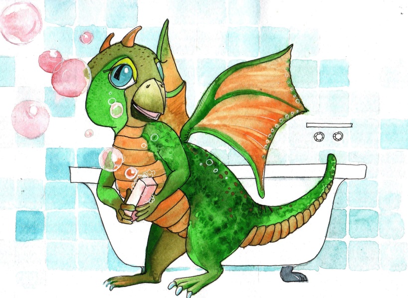 Потом Дракоша забрался в ванную комнату и попробовал мыло, которым мама Рози мыла свои розовые ушки. Мыло Дракоше совсем не понравилось, и он тут же прополоскал рот. От этого в ванной комнате образовалось много мыльных пузырей. Дракоша ловил их зубами, пузыри лопались, а страусёнок Пик и обезьянка Кики смеялись.