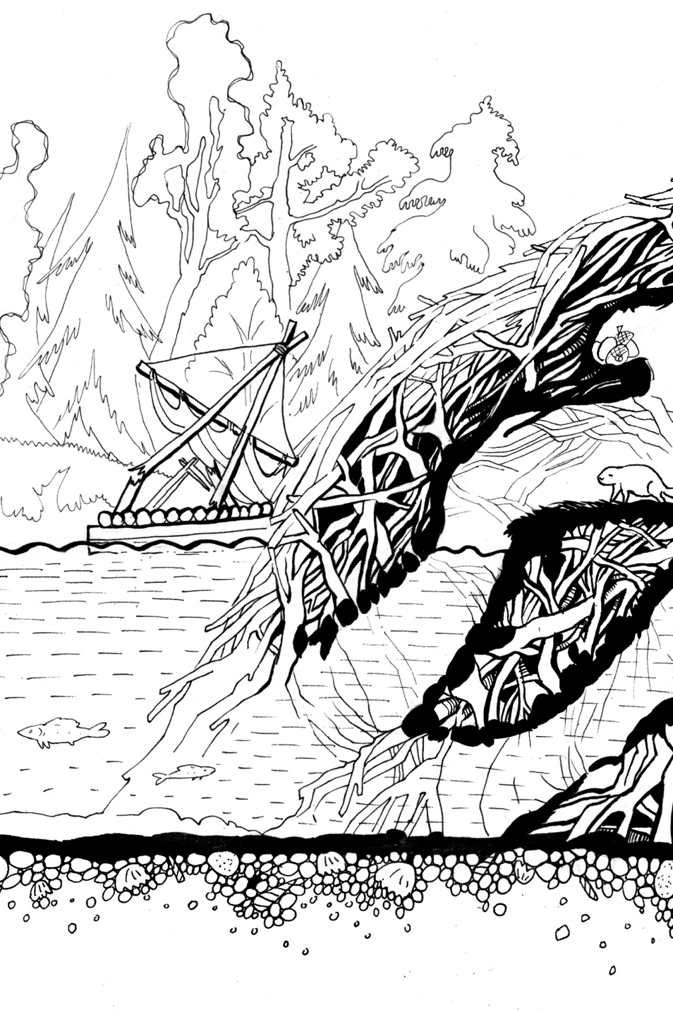 Бобр ухватился за кораблик передними лапами и без особых усилий затащил его на плотину. Сим застыл, поражённый силой своего нового товарища. Тот усмехнулся, затем так же легко перевернул плот на бок, подперев остатком мачты.