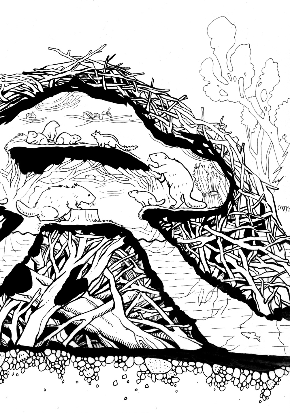 Как и многие бобриные хатки, дом Бобриковых начинался с одной единственной комнаты, которая служила и гостиной, и столовой, и спальней. Но даже у этой единственной комнаты (строилась она во времена, когда Бобрис только познакомился со своей будущей женой, и о детях они ещё не задумывались) уже было два выхода.