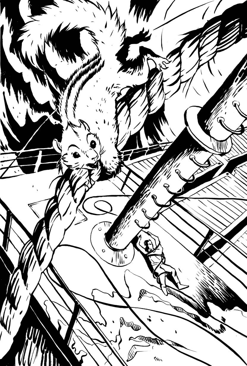 Сим перебрался на мачту и принялся спускаться. Он должен успеть! Но чем ближе бурундучок был к палубе, тем тяжелее ему приходилось. Теперь его пытался сбросить не только ветер, но и волны.