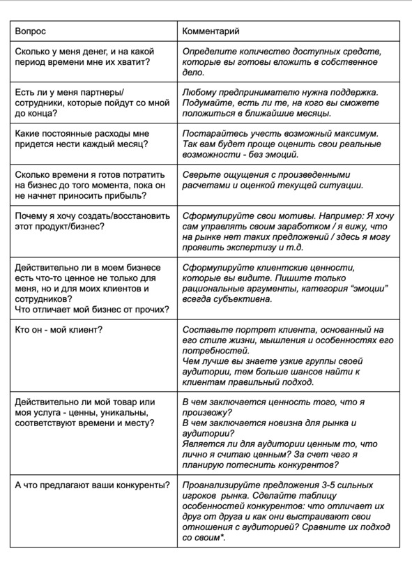 После того, как вы ответили на все вопросы, не спешите переходить к следующему блоку. Дайте себе время, оцените ваши аргументы с позиции дотошного критика. Спросите себя: «действительно ли все те ресурсы, что я имею сегодня, и те идеи, которые есть у меня сейчас, позволят мне создать/спасти бизнес в текущих реалиях?»