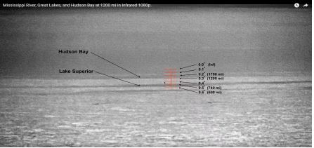 Любопытный опыт провел один неравнодушный, наблюдая с помощью качественный камеры и фильтров на ней с высоты полета самолета объекты в более чем 2000 км от себя (1200 миль). При всем при том, что официальная дальность видимости порядка 350 км с высоты 10 км. На скринах светлым выделана земля, а темным – вода. Скажете, рефракция так растянула горизонт?