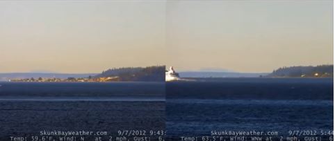 Интересное наблюдение было проведено с одной высоты на протяжении нескольких часов. Запись велась долго, а горизонт плавал то туда, то назад в зависимости от погодных условий.