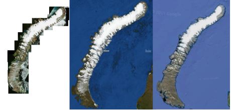 Рекомендую провести любопытный эксперимент. Правда он займет минут 30 времени, но для искателя это ведь мелочь. Возьмите, Яндекс. Карты и Google Планета. Выберите какой-то объект. Я брала Новую Землю. Составьте из кусочков карт масштабом 10 км карту масштабом 90 км. И сравните полученную карту масштаба 90 км с исходной картой Google и Яндекс в 90 км.