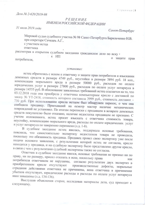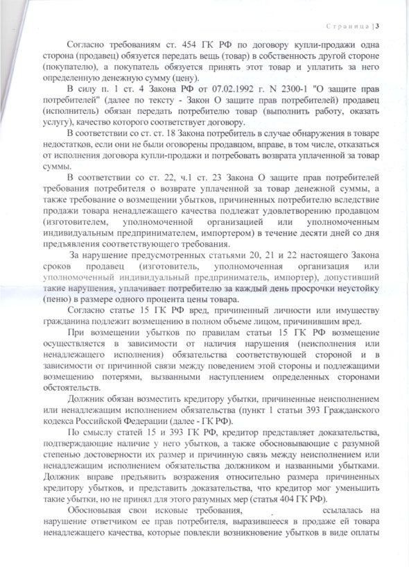Потребителю показалось, что в товаре есть недостаток, она обратилась к юристам-аферистам, они быстро вытянули с нее деньги и составили ей заявление в суд.