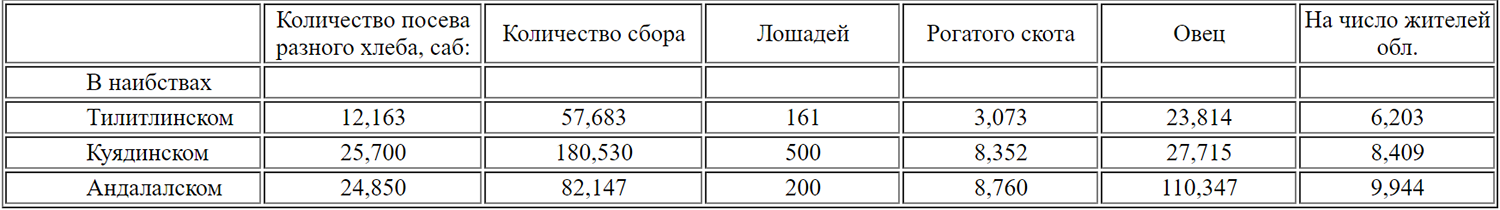 Вот некоторые статистические сведения, дающие хотя приблизительное понятие о степени достатка среднедагестанских обществ: