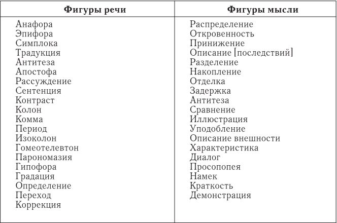 Несмотря на то, что автор оговорил, что он ставит себе в особенную заслугу употребление исключительно латинских названий фигур речи и мысли, мы сохранили исторически сложившиеся названия, пришедшие к нам из греческого языка, и русские эквиваленты, дающие лучшее представление об особенностях фигур, приведя латинские названия в скобках.