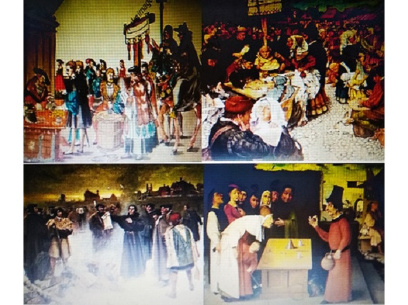 Монах обманывает народ. – Он деньги за отпущение грехов, берёт – вперёд!