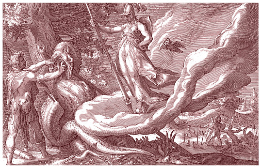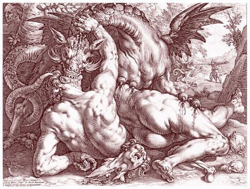 Кадм и дракон на гравюре Хендрика Гольциуса.