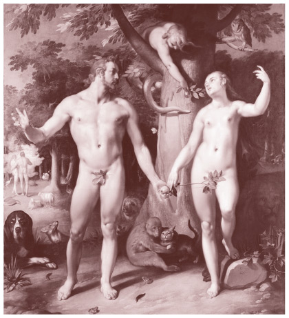 Змей-искуситель на картине Корнелиса Корнелиссена, 1592 г.