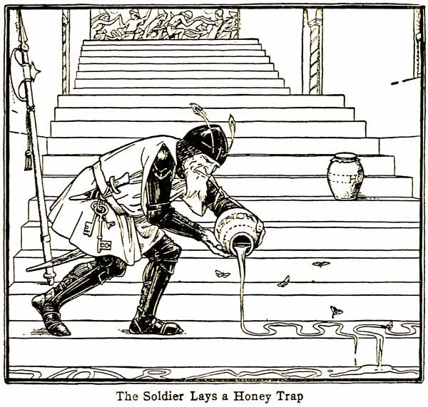 There was once a man who was the laziest man in all the world. He wouldn't take off his clothes when he went to bed because he didn't want to have to put them on again. He wouldn't raise his cup to his lips but went down and sucked up his tea without carrying the cup. He wouldn't play any sports because he said they made him sweat. And he wouldn't work with his hands for the same reason. But at last he found that he couldn't get anything to eat unless he did some work for it. So he hired himself out to a farmer for the season. But all through the harvest he ate as much and he worked as little as he could; and when the fall came and he went to get his wages from his master all he got was a single pea. "What do you mean by giving me this?" he said to his master. "Why, that is all that your labor is worth," was the reply. "You have eaten as much as you have earned." "None of your lip," said the man; "give me my pea; at any rate I have earned that." So when he got it he went to an inn by the roadside and said to the landlady, "Can you give me lodging for the night, me and my pea?" "Well, no," said the landlady, "I haven't got a bed free, but I can take care of your pea for you." No sooner said than done. The pea was lodged with the landlady, and the laziest man went and lay in a barn near-by.