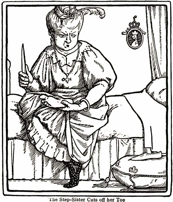 "Some cut their heel, and some cut their toe,But she sat by the fire who could wear the shoe."And so they were married and lived happy ever afterwards.
