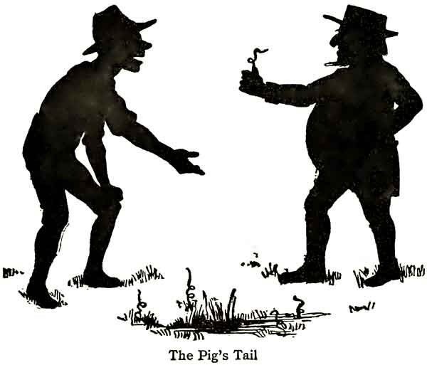So he went with Jack to the marsh, and when he saw the pigs' tails all peeping out the marsh he went and plucked one of them out of the ground, and Jack said: