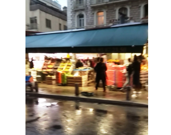 Слева за углом ночной рыночек, совсем недалеко от отеля, рядом. По три евро груши за килограмм. Сам то понял, что сказал? То ли евро груши, толи три евро. Точно нервное. Переезд сказывается.