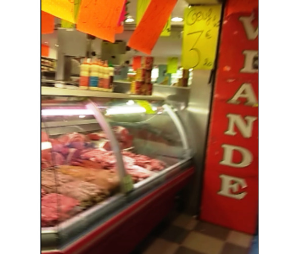 Очень интересный квартальчик такой. Слева опять магазин, полностью открыт на улицу. Одно мясо. Красивое.