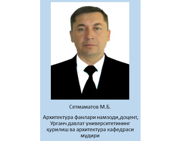 Ахмедов Қ. Техника фанлари номзоди, Урганч давлат университетининг қурилиш ва архитектура кафедраси доценти