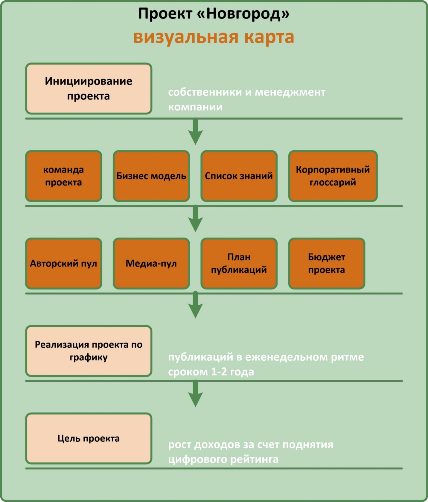 Часть I. Практика. Проект «Новгород». Компактное описание перевооружения бизнеса в терминологии проектного менеджмента. Цель проекта, ресурсы, график, иерархия задач, план проекта.