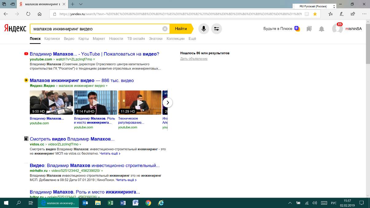 Если слегка уточнить запрос и искать видео от того же автора, то Яндекс на первое место выводит ссылки снова на нашего Владимира Малахова. В первом запросе эти ссылки тоже имеются, но не на первой странице.