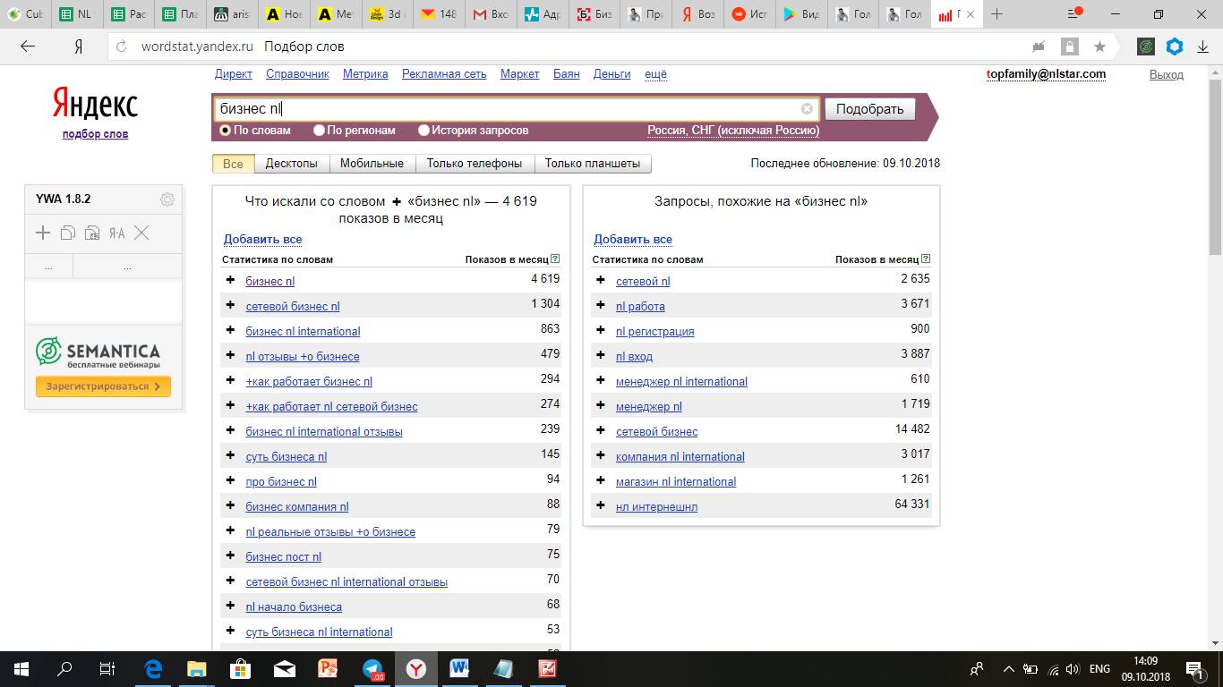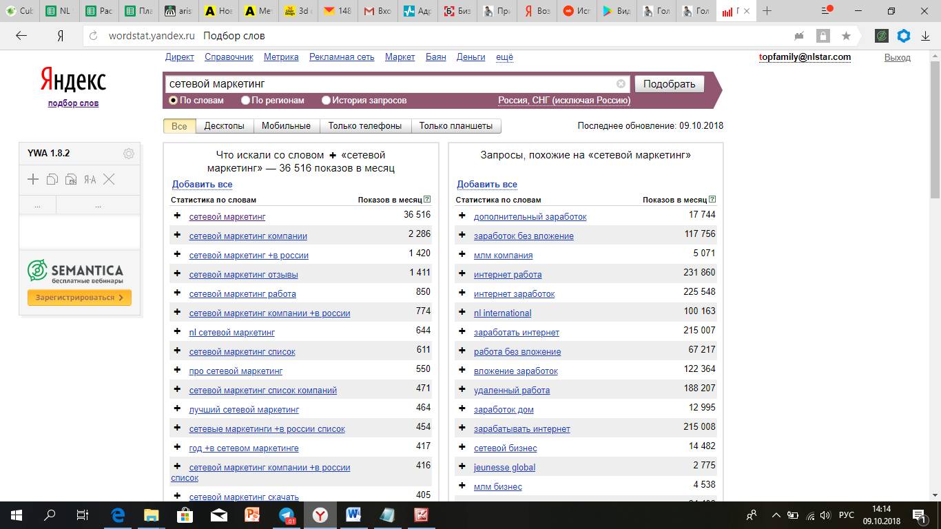 Предлагаю вам посмотреть на то, какой объем людей ищут через Интернет возможности запуска своего бизнеса с компанией NL International и сетевой маркетинг в целом. На рисунках 1 и 2 вы можете увидеть ключевые запросы в поисковой системе Яндекс и количество этих запросов в месяц.